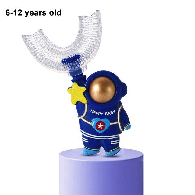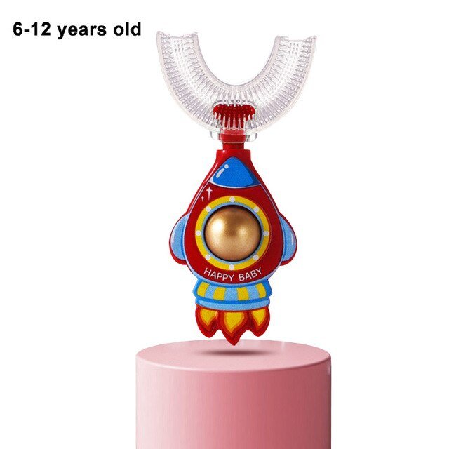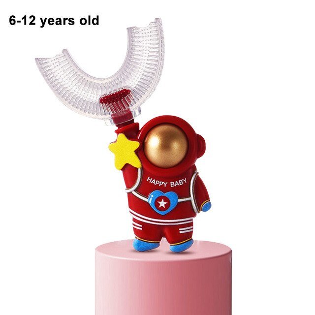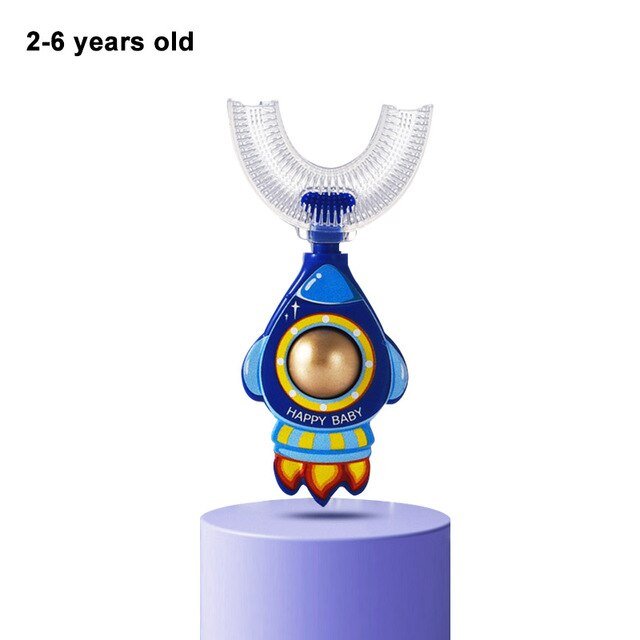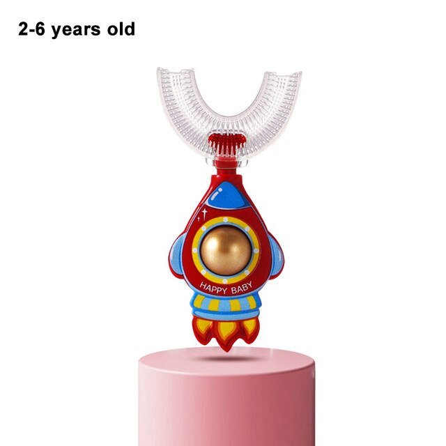 Astronaut Rocket Toothbrush Children’s 360 Degrees U-shaped Toothbrush Teethers Baby Soft Silicone Teeth Oral Care Cleaning Tool