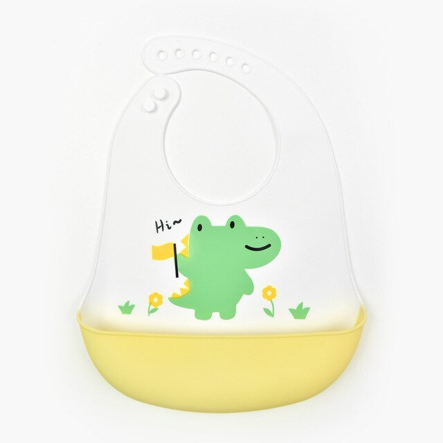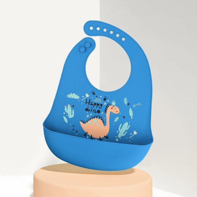 Baby Waterproof Silicone Bib BPA Free Baby Feeding Stuff Kids Girls Boys Adjustable Cartoon Bibs Solid Feeding Baby Accessories