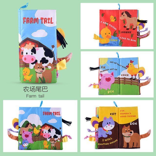 Kids Fabric Books Early Learning Educational Cloth Book 0-12 Months Develop Cognize Animal Tails Reading Toy погремушки