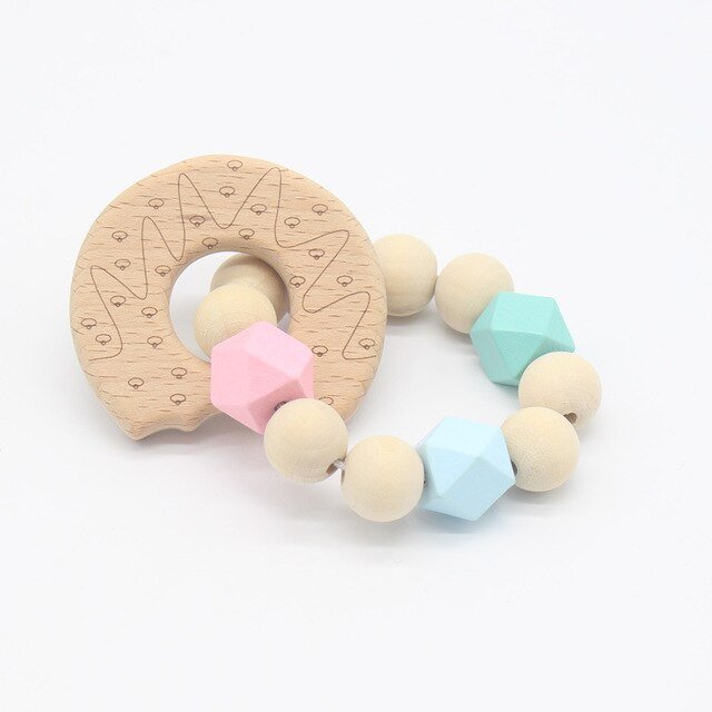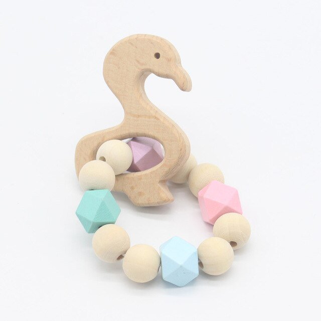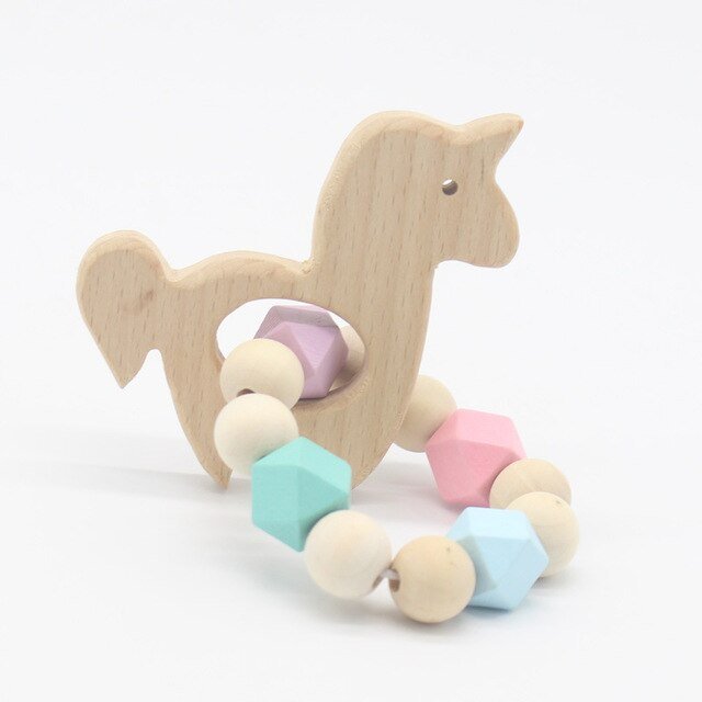 Wood Teeth Ring Baby Bracelet Animal Shaped Jewelry Teething For Baby Wood Beads Baby Rattle Stroller Accessories