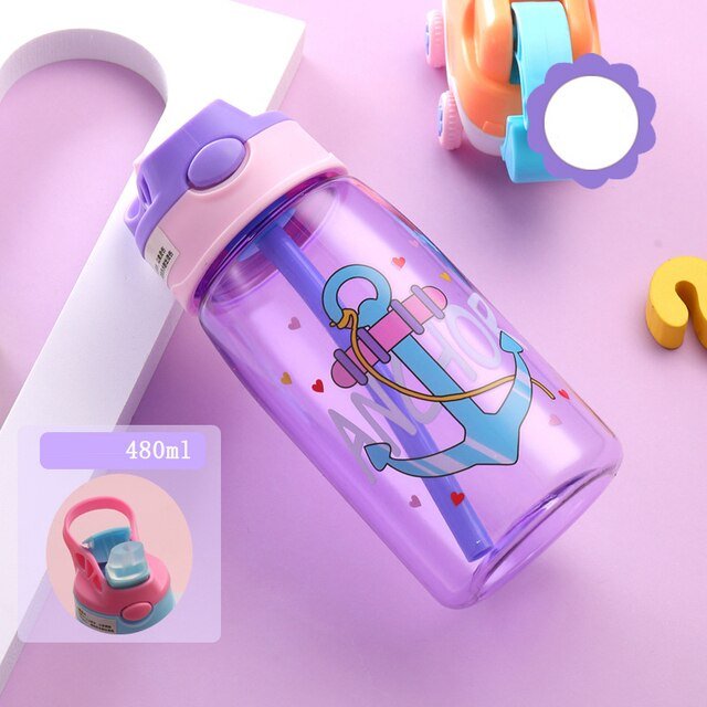 480ml Kids Water Sippy Cup Cartoon Baby Feeding Cups With Straws Leakproof Water Bottles Outdoor Portable Children’s Cups