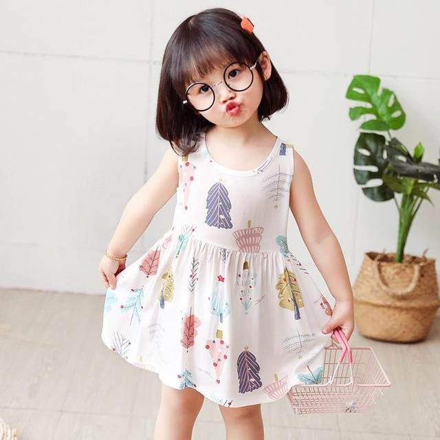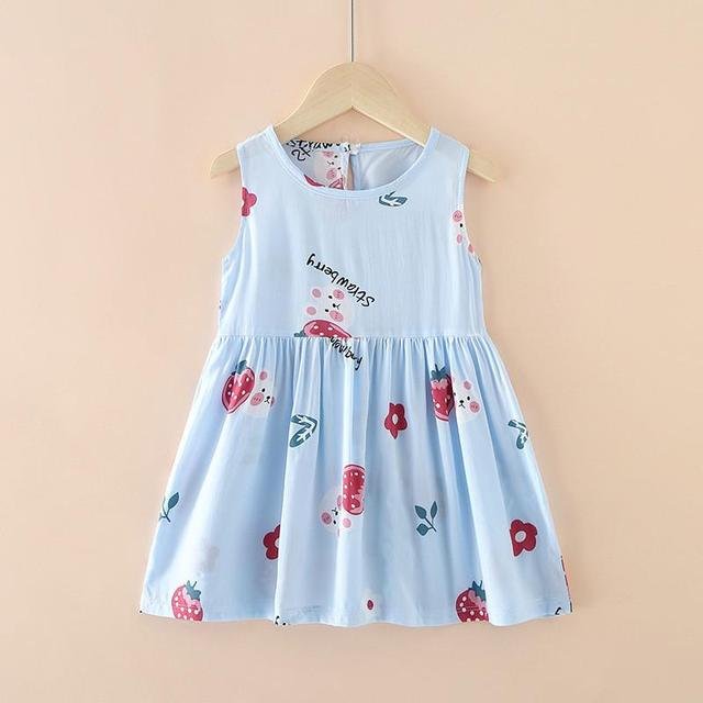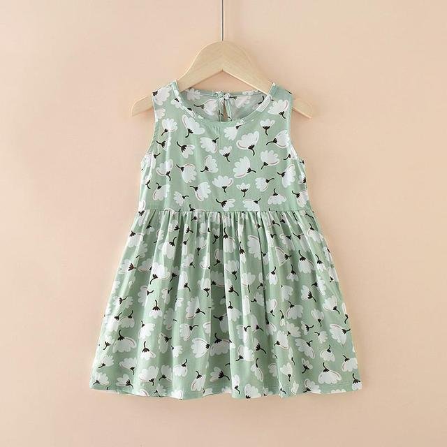 2-7 Years Baby Girls Sleeveless Flower Print Dresses Clothes Kids Girl Summer Princess Dress Children’s Party Dress Outfit