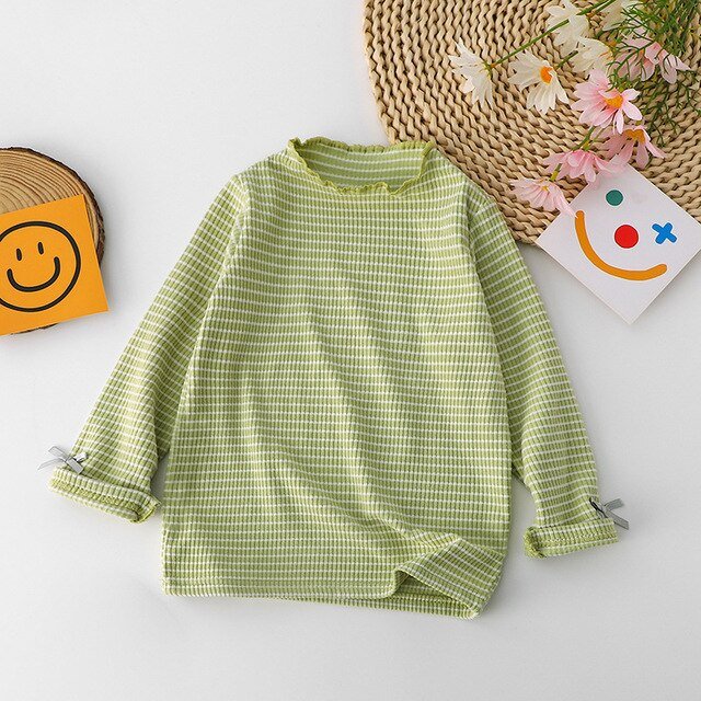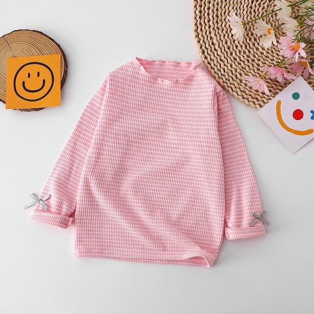 Girls Baby Long Sleeve T-shirts Striped Bottoming Shirt Kids Casual Simple All-match Fashion Trendy Loose Cotton Cute Soft Top