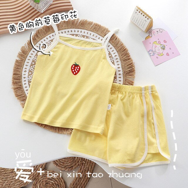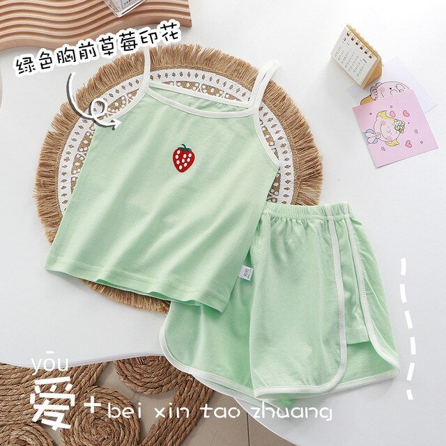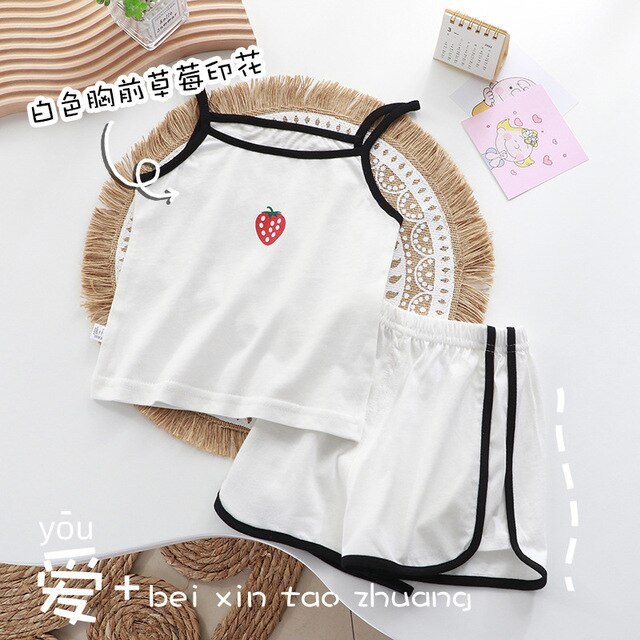 New Style Girls Casual Round Neck Sleeveless+pants Thin Loose Two Pieces Outfits Kids Summer Pure Cotton Fashion Soft Vest Sets