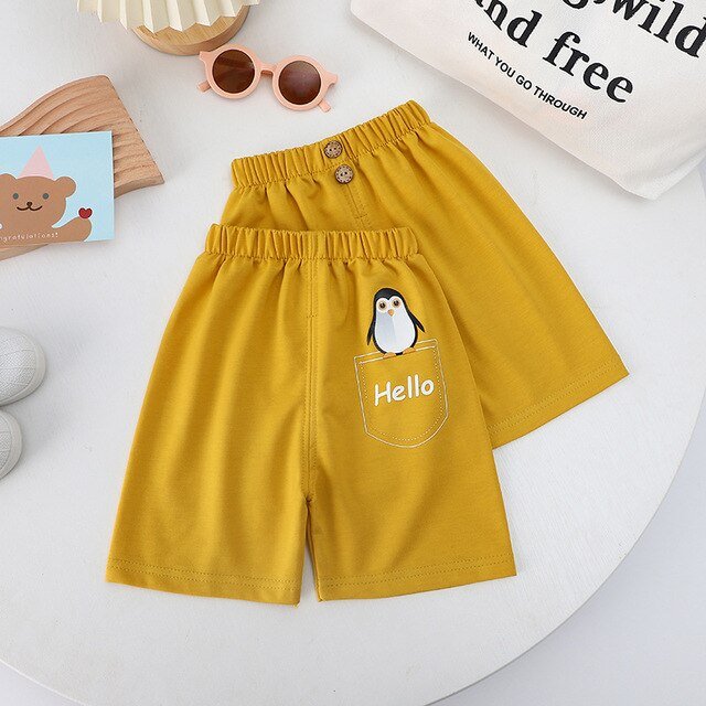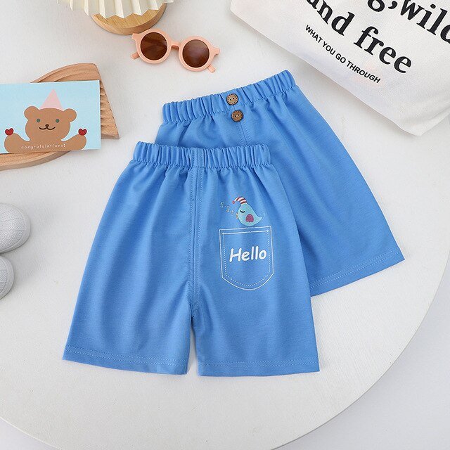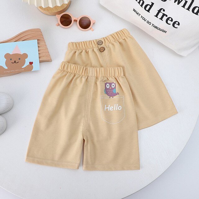 Solid Color Pants Baby Unisex Casual Fashion Loose Elastic Waist Thin Summer Children’s Cartoon Cute Little Animal Print Shorts