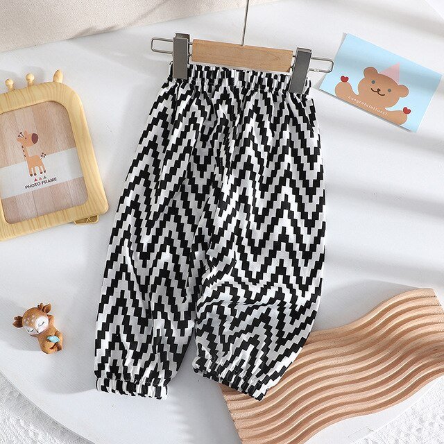 Summer New Style Cotton Mosquito Pants Boys And Girls Wear Thin Loose Full Print Casual Soft Skin Children Long Length Bloomers