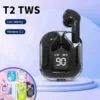 Original T2 Wireless Bluetooth Earphone Transparent HIFI Headphones LED Power Digital Display Stereo Sound Earphones for Xiaomi