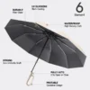 3. New Reverse Folding Design: The newest reverse travel umbrella features an inverted design from the inside out unlike ordinary automatic umbrellas. When closed, it keeps the wet outer surface inside so that it won’t get wet on your clothes, floor, or car seat, bringing great convenience for your daily commute and getting in and out of the car.