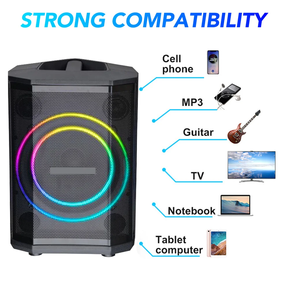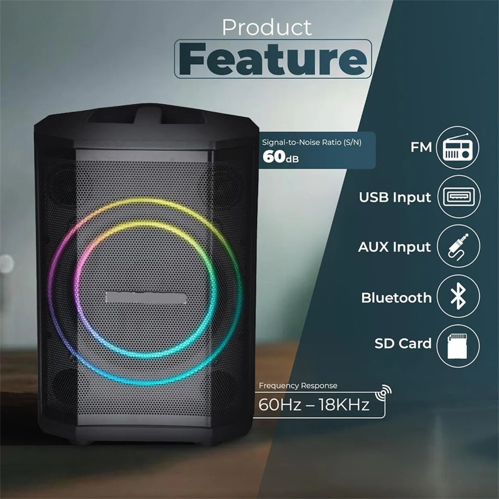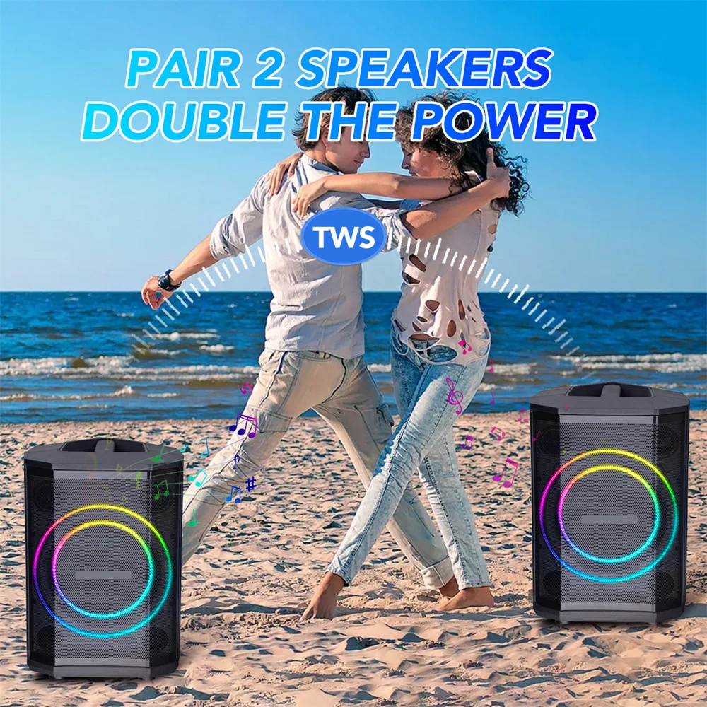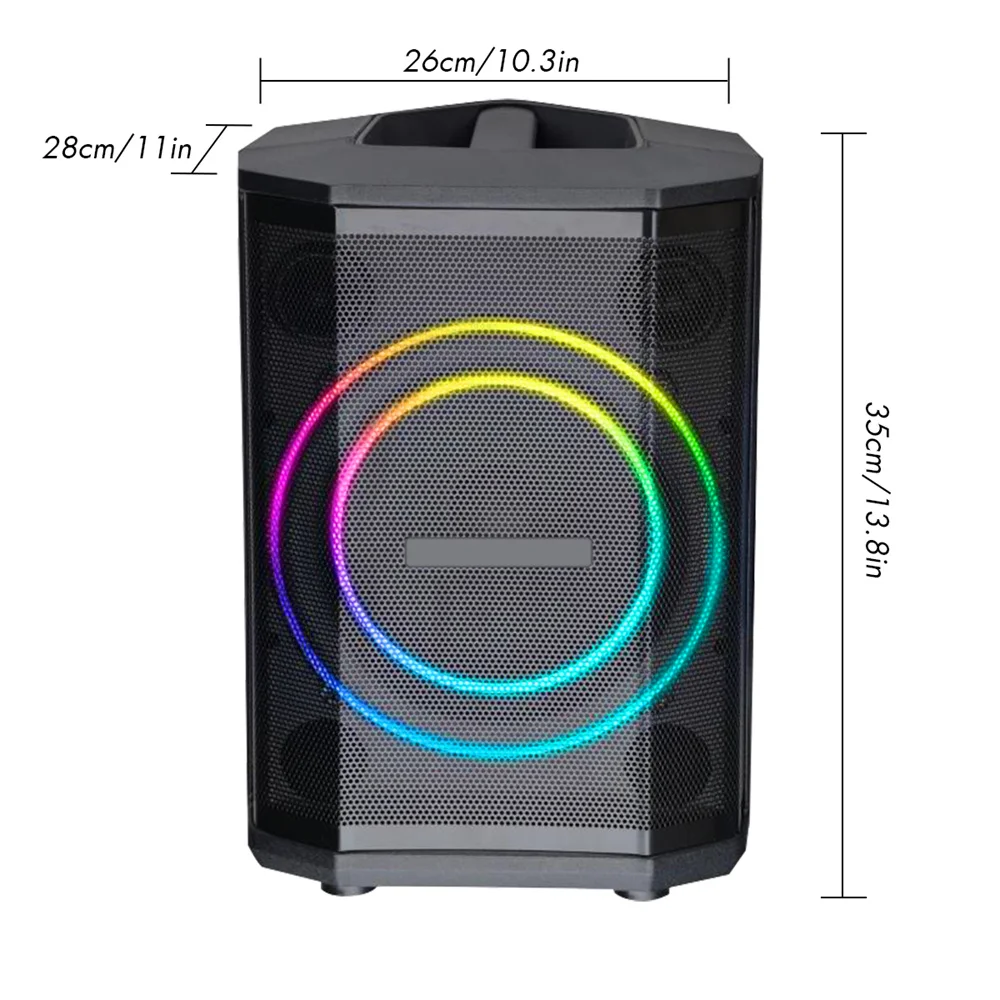 Portable & versatile: Take the party with you wherever you go! The speaker is designed for portability, making it easy to bring the music and lights to any location – be it backyard barbecues, beach parties, or camping adventures.