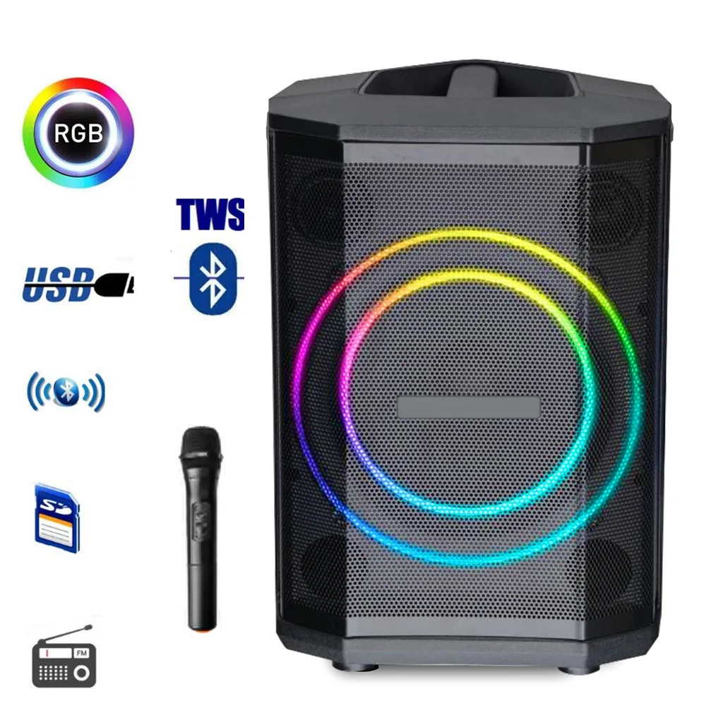 2400W Portable Tiltable Bluetooth Party Speaker 8 “Subwoofer Heavy Bass Sound System Dj Led Light Loud Speaker with Microphone