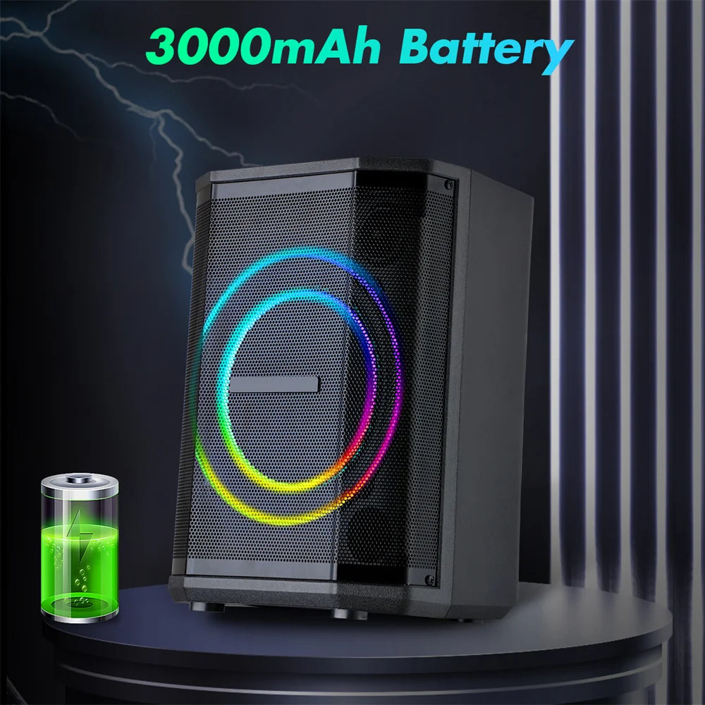 High Capacity Battery: The speaker comes equipped with 3000mAh 7.4V Lithium-ion Battery, allowing you to enjoy music for an impressive 5 hours at 70% volume. Keep the party going without worrying about running out of power.