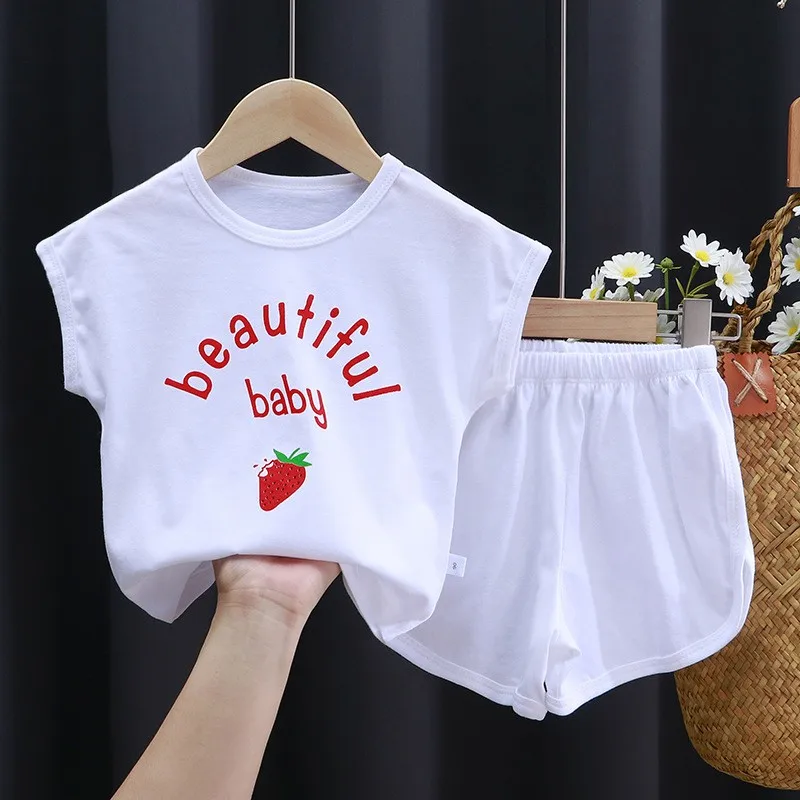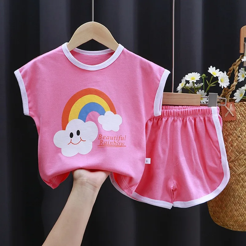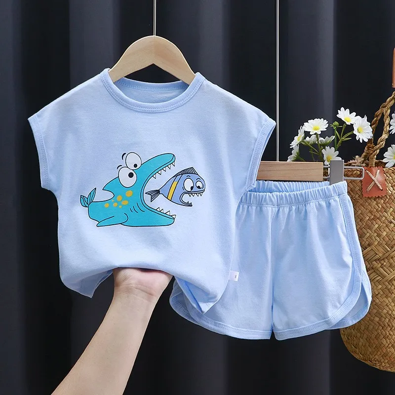 Baby Unisex Summer Thin Loose O-neck Pullover T-shirts+shorts Suits Cartoon Print Kids Short Sleeves Clothes Girls Boys Outfits