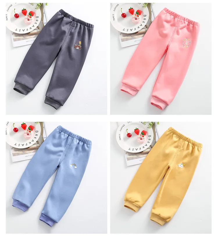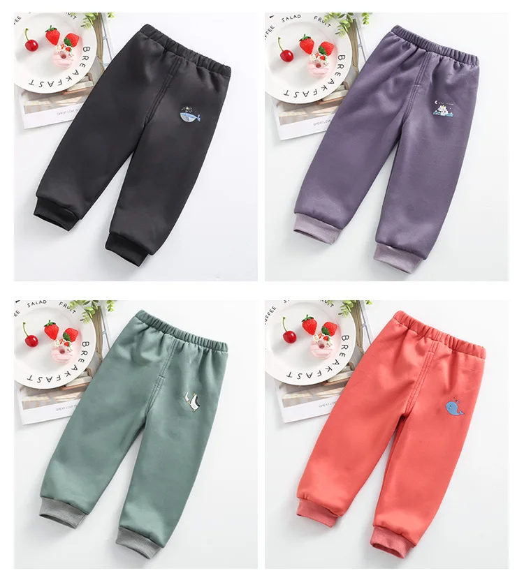 Winter Trousers Solid Color New Fashion Baby Warm Loose Soft Boys Girl Cotton Elastic Waist Children Full Length Pants 1-4Years